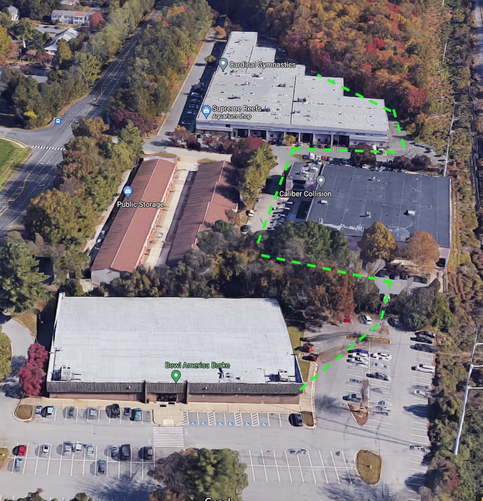 There is a footpath between Bunnyman and Bowl America which involves only the tiniest bit of casual tresspassing if you want to park at the bowling alley and walk back and forth.